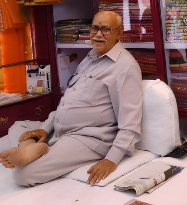 Founded in 1975 by Late Shri Ishwar Chand Ji Naga, Kiran Saree Niketan started as a small store in Kota with a passion for Kota Doria sarees. Over the years, we evolved from a local shop into a respected manufacturer, wholesaler, and retailer, known for our quality and craftsmanship. Our legacy blends tradition with modernity, creating timeless pieces that continue to be cherished